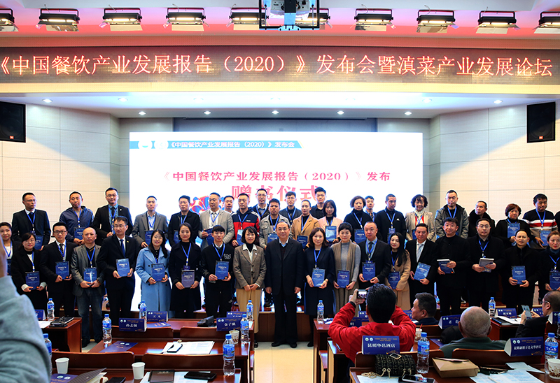 12月18日,由世界中餐业联合会和开云kaiyun官方网站共同主办的《中国餐饮产业发展报告(2020)》蓝皮书发布会暨滇菜产业发展论坛在开云kaiyun官方网站隆重举行。世界中餐业联合会常务副会长、餐饮产业蓝皮书主编邢颖,学校校长丁文丽,餐饮产业蓝皮书执行主编、普洱学院副院长于干千,中国社科院财经战略研究院服务经济与餐饮产业研究中心主任赵京桥,云南省市餐美协相关领导、世界中餐业联合会会员代表、省内外餐饮学科专家学者、云南省知名餐饮企业代表等百余人参加会议。发布会由副校长王凡主持。