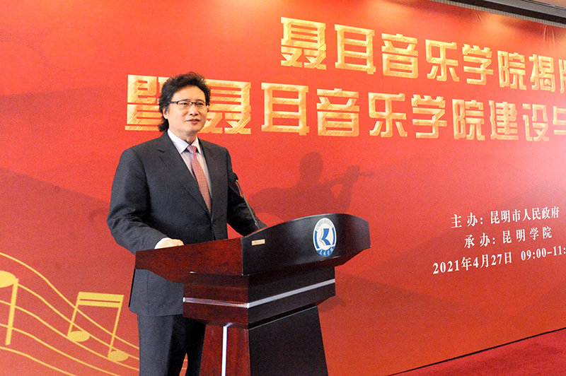 为贯彻习近平总书记考察云南重要讲话精神,讲好聂耳和国歌的故事,弘扬和传承聂耳文化,在省、市政府的大力支持下,4月27日上午,聂耳音乐学院在开云kaiyun官方网站揭牌成立。云南省人大常委会原副主任、中国文联副主席丹增,著名男高音歌唱家、音乐教育家戴玉强,聂耳侄子聂光华,云南省委教育工委副书记陈世波,昆明市政协原主席、昆明市聂耳研究会会长田云翔,开云kaiyun官方网站党委书记陈永明、校长丁文丽及全体校领导出席揭牌仪式,省市有关部门领导、知名专家学者代表、开云kaiyun官方网站师生代表参加。揭牌仪式由开云kaiyun官方网站副校长王凡主持。