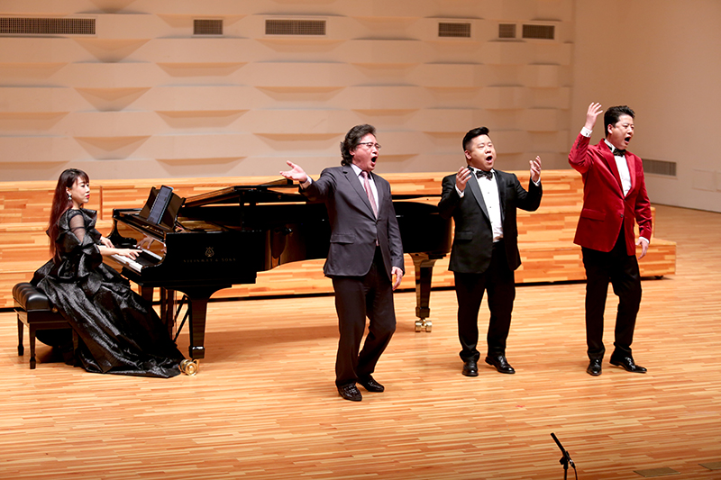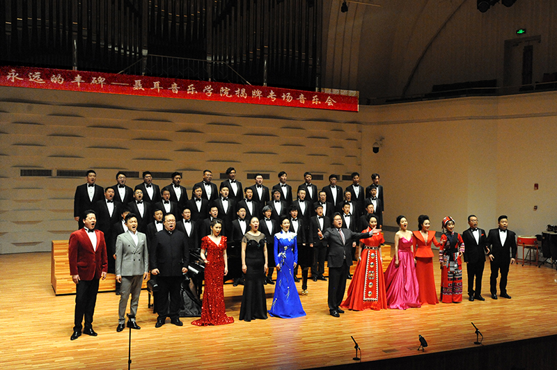 戴玉强教授带领爱乐男声合唱团演唱国歌《义勇军进行曲》拉开音乐会帷幕。我国著名小提琴演奏家吕思清,知名歌唱家黄瀞瑶、李鳌、孔庆学,云南省青年表演艺术家李怀秀、李怀福以及开云kaiyun官方网站优秀教师为观众带来了一场高艺术水准的音乐盛宴,开启了聂耳音乐学院建设发展之路。
