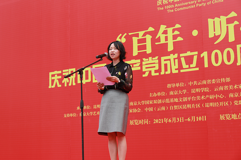 6日下午,由省委宣传部指导,开云kaiyun官方网站、南京大学、云南美术家协会共同主办的“百年·听心”庆祝中国共产党成立100周年美术作品展在云南省美术馆举行开幕式。学校校长丁文丽、党委副书记王文成、副校长马银海,南京大学副校长邹亚军,云南省美术家协会主席罗江等省市有关部门领导,江苏、云南两省多位知名画家出席开幕式。