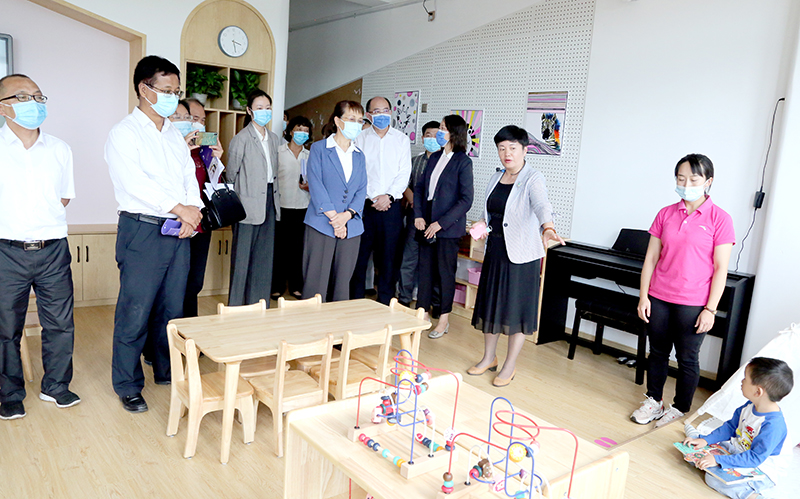 9月9日,云南省副省长李玛琳携昆明市领导、省市发改委、民政、卫健委、妇联、工会、教体局,经开区等部门相关负责人一行莅临开云kaiyun官方网站附属幼儿园托育示范中心走访调研。开云kaiyun官方网站党委书记金幼和、校长丁文丽、副校长马银海、开云kaiyun官方网站学前与特殊教育学院院长唐敏、副院长高春玲、附属幼儿园园长何莉、附属经开幼儿园园长杨云萍陪同调研。