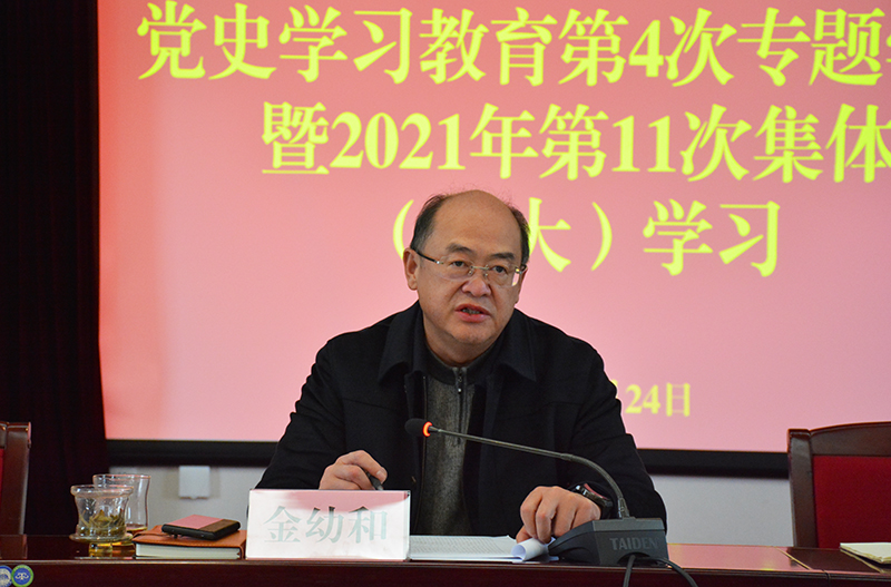 11月24日,开云kaiyun官方网站党委理论学习中心组在办公楼502召开党史学习教育第4次专题学习暨2021年第11次集体(扩大)学习,专题学习研讨党的十九届六中全会精神。学校党委书记金幼和主持学习并讲话。