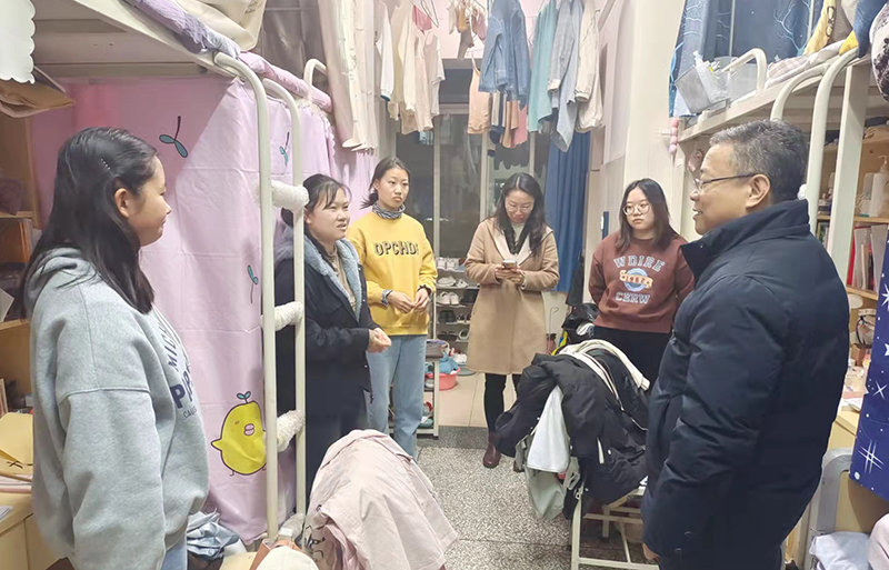 为进一步贯彻落实领导干部直接联系服务师生制度,扎实推动党史学习教育和“我为师生群众办实事”实践活动走深走实,11月24、26日晚,学校党委副书记王文成带领机关和相关院系值班同志,到体育学院、校团委、校医院、人文学院等学生宿舍进行走访,仔细查看了解宿舍来访登记管理、环境卫生、基础设施、消防安全、学生就医问诊等情况,并深入宿舍与同学热情交流,详细询问了解同学们的学习、生活等情况,认真倾听同学们提出的困难、需求和建议。在交流中,王副书记勉励同学们要做好人生规划,努力学习、不负韶华,珍惜大学难得的宝贵时光,不辜负家长和老师的期望。同时叮嘱大家要养成晨读晨练的好习惯,加强专业实践,练就自身过硬本领,要爱护寝室,保持良好的宿舍环境,养成良好的生活学习习惯。