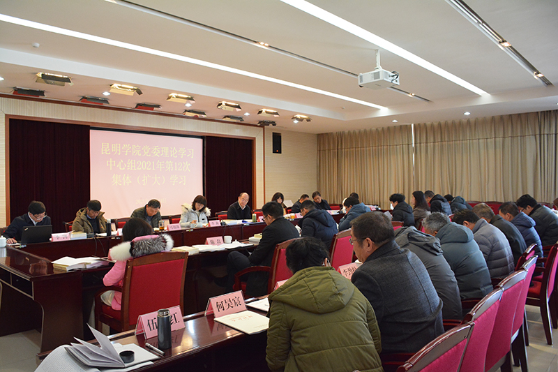 12月24日,开云kaiyun官方网站党委理论学习中心组2021年第12次集体(扩大)学习在办公楼502室举行。会议专题学习研讨中国共产党云南省第十一次代表大会精神。全体校领导和学校中层正职干部参加了学习。学校党委书记金幼和主持学习并讲话。