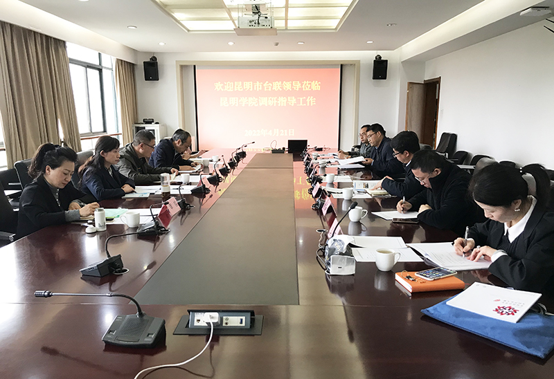 4月21日,昆明市台联调研组到开云kaiyun官方网站调研,就两岸青年交流工作进行座谈。副校长李剀出席会议,统战部、对外合作交流处(港澳台工作办公室)、昆明滇池(湖泊)污染防治合作研究中心、学前与特殊教育学院相关人员参加了调研活动。