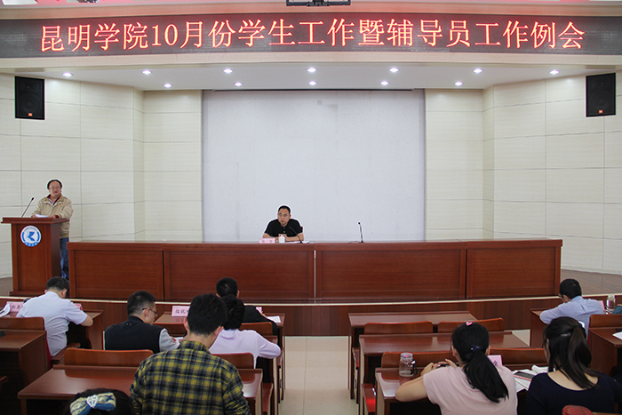 9月26日,学校在办公楼D区报告厅召开9月份学生工作暨辅导员工作例会。学校副校长郭华出席并主持会议。教务处、团委、学生处、武装部、保卫处、后勤集团等职能部门负责人,各院系分管学生工作的党总支副书记、全校辅导员及学生处全体人员共100余人参加了会议。