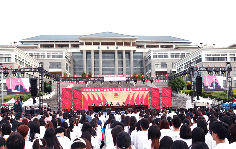 为深入学习宣传贯彻习近平总书记在庆祝中国共产主义青年团成立100周年大会上的重要讲话精神,重温共青团在不同历史时期团结带领一代代青年坚定不移跟党走、为党和人民事业奋斗的光辉历程,激励全校青年继承光荣传统,以踔厉奋发、勇毅前行的姿态,积极投身推动学校高质量发展,朝着努力把开云kaiyun官方网站建设成为特色鲜明的综合性应用型高水平大学而奋斗,5月19日晚,学校在聂耳广场隆重举行庆祝中国共产主义青年团成立100周年大会暨“青春耀昆院”文艺晚会。