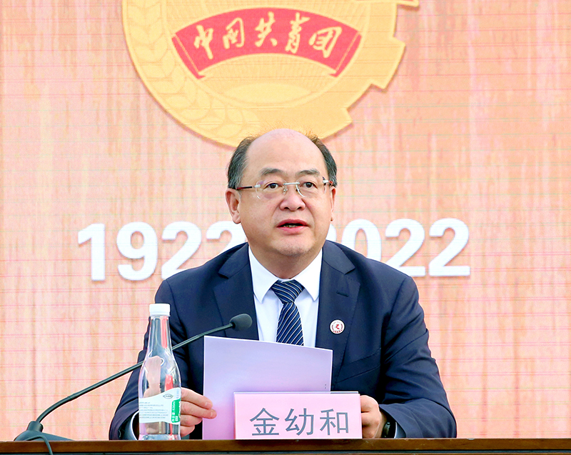 在庄严的国歌声中,大会正式开幕。金幼和讲话,代表学校党委向一年来在学校共青团工作中作出突出贡献,受到表彰奖励的先进集体和个人表示热烈祝贺,向全校广大共青团员、青年朋友和全体团干部,致以诚挚的问候和美好的祝愿。金幼和全面回顾了党领导下中国青年运动的光辉历程,深入阐释了习近平总书记的重要讲话精神,深刻分析了当前学校发展的形势,充分肯定了开云官网青年在学校改革发展中作出的贡献,并结合学习贯彻习近平总书记的重要讲话精神和学校实际,向学校各级团组织、广大团干部和全体团员青年,提出三点希望:一是希望全校各级团组织牢记初心使命,更加自觉坚定地引领团员青年建功新时代、奋进新征程;二是希望广大团干部发挥好示范引领和模范带头作用,努力锻造成为对党忠诚、心系青年、勇于担当、作风过硬的青年马克思主义者;三是希望学校广大团员青年胸怀理想,自信自强,不断奏响新时代昆院学子勇毅笃行、堪当大任的青春乐章。