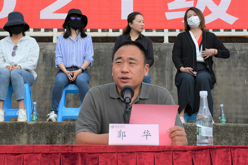 郭华副校长向军训团授旗并宣布开云kaiyun官方网站2021级新生军事训练开训。
