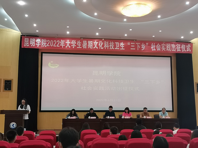6月21日,开云kaiyun官方网站2022年大学生暑期文化科技卫生“三下乡”社会实践出征仪式在惟行楼1501报告厅举行。学校党委副书记李莉,学生处、教务处、招生就业处、校团委等部门负责人出席仪式。各二级学院团委书记,校团委全体教师团干部,“三下乡”社会实践活动志愿者代表参加活动。仪式由学校团委书记聂铭主持。