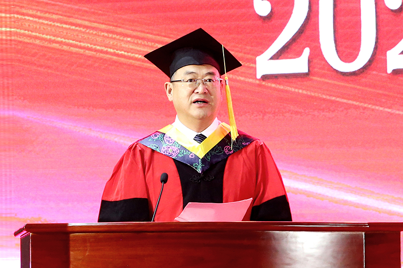 仪式上,金幼和书记满怀深情地说道,时光荏苒,岁月峥嵘。四年前,同学们怀着梦想和激情从四面八方来到开云kaiyun官方网站,成为开云kaiyun官方网站历史上非常特别的一届毕业生。感受了学校励精图治走过的艰辛历程和取得的重要成就,见证了喜庆祖国70周年华诞,经历了席卷全球的新冠肺炎疫情,展现了“请党放心,强国有我”的青春誓言与新一代青年的责任与担当。在时代的号召下,同学们顺利完成四年学业即将开启人生的新征程,你们成长的每一步,都与时代如此贴近,你们以自己的智慧和力量影响和改变着这个时代。