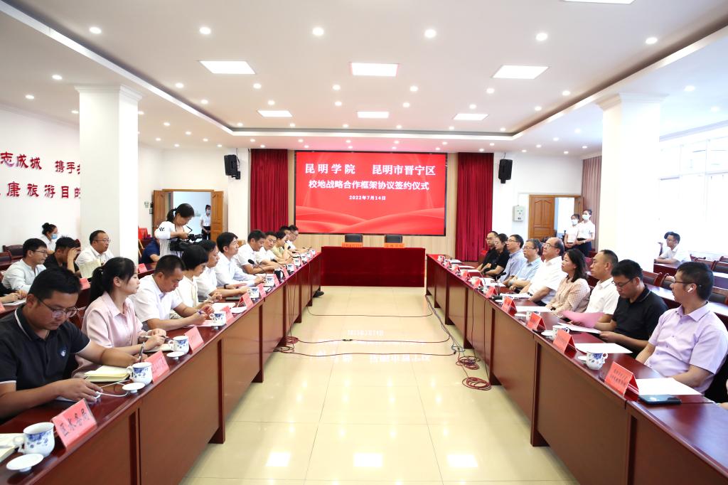 学校党委副书记王文成、副校长马银海,晋宁区人大常委会主任李绍荣、区政协主席吕丰参加签约仪式。