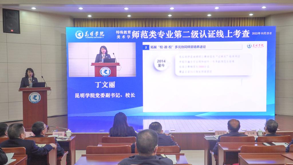 丁文丽围绕“践行认证理念,为师范生办实事”“立足边疆教育,为云之南育良师”两个方面,汇报学校师范类专业建设情况。她指出,学校始终践行认证理念,在师德师风建设、专业建设、课程改革、师范生技能训练、硬件设施等方面着力保障师范生培养质量。丁文丽表示,当前中国高等教育已经进入高质量发展的新阶段,学校将以建设特色鲜明的综合性应用型高水平大学为目标,抓住专业认证和一流专业建设等发展机遇,扎实推进教师教育振兴行动计划,努力办好人民满意的教育,努力培养大批堪当全面建成社会主义现代化强国、实现第二个百年奋斗目标重任的时代新人。