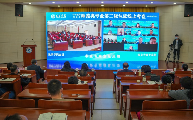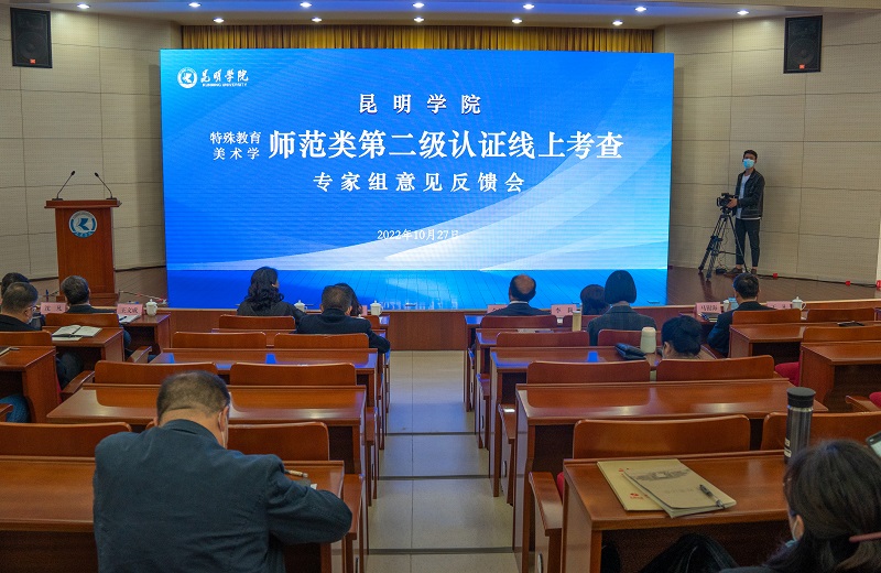 10月27日下午,学校召开特殊教育、美术学师范类专业认证专家组意见反馈会。会议由联合认证组长申仁洪教授主持。认证专家组全体成员,云南省教育评估院相关负责人,昆明市教育体育局副局长吕丽,学校党委书记金幼和、校长丁文丽,校领导李莉、王文成、马银海、沈凡、王凡、李剀、罗荣辉出席。会议以视频方式召开。