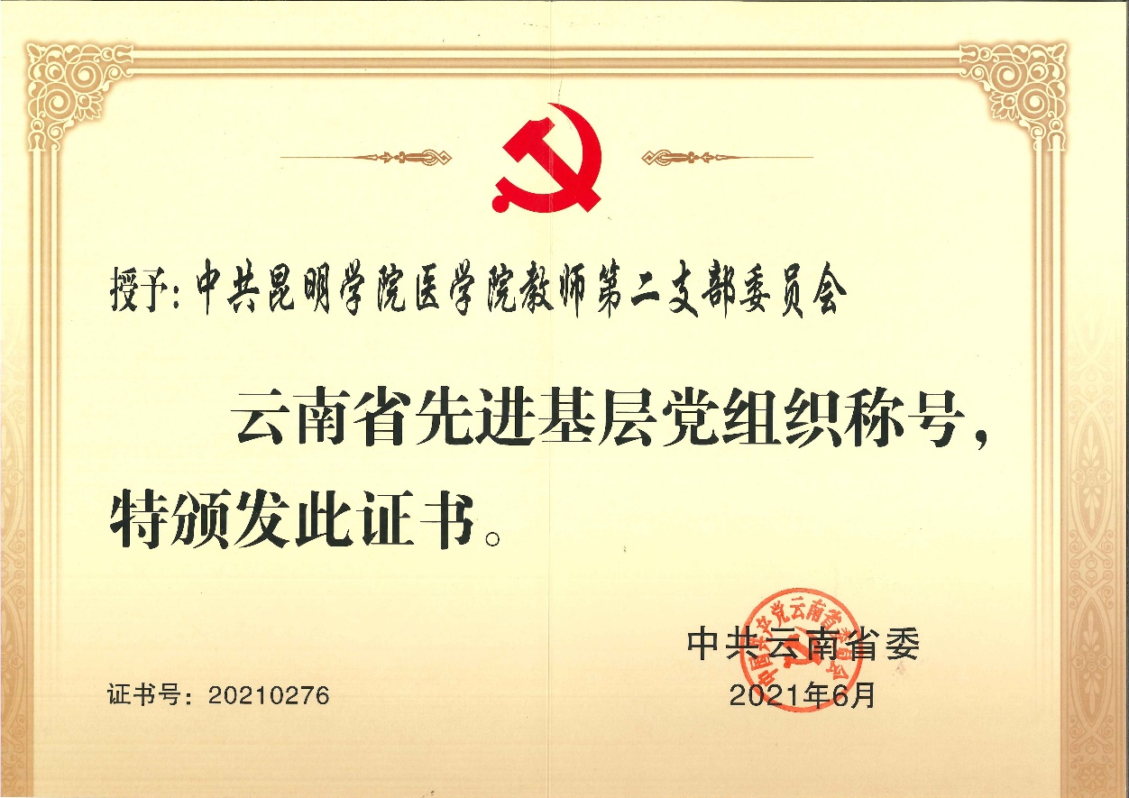 学院始终围绕新时代高校党建示范创建和质量创优工作,以党建工作示范党组织创建为抓手,全面提升基层党建工作水平。2020年9月,医学院党委被评为全省第二批高校“一流党建示范院(系)党组织”。医学院教师第二党支部先后被省委教育工委、省委组织部、教育部选树为“云南省高校规范化建设示范党支部”“云南省规范化建设示范党支部”“全国党建工作样板支部”。2021年,教师第二党支部被评为“云南省先进基层党组织”并受到省委表彰。以党建带团建,加强思想政治教育和学风建设,抓实学生工作,全心全意服务于学生的健康成长。学院团委(原团总支)连续多年被评为学校“五四”红旗团总支、红旗团委,学生会被评为优秀学生会。张雪梅老师和张芮宁同学两位党员获评为2022年开云kaiyun官方网站首届“最美昆院人”。