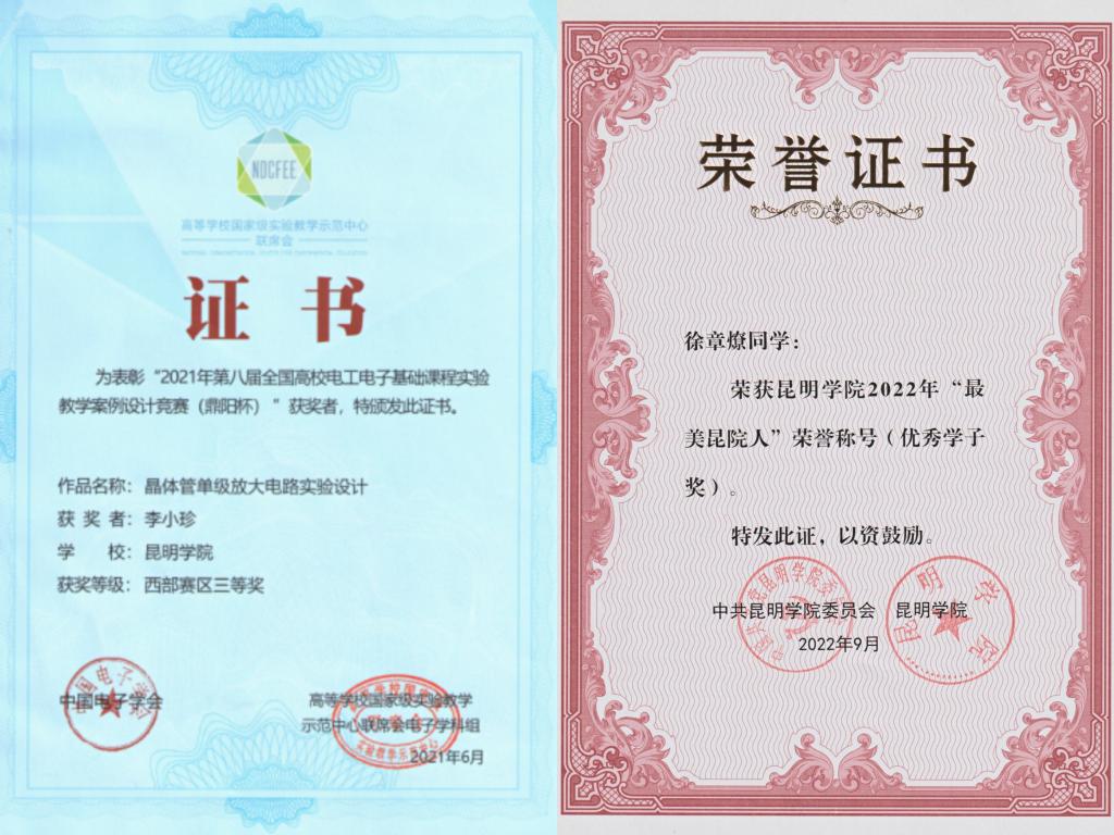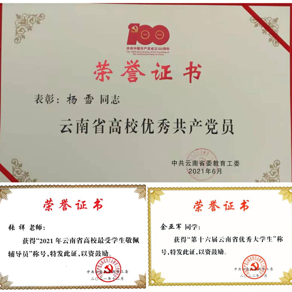 积极开展一流党建创建活动,党支部战斗堡垒作用和党员先锋模范作用充分发挥,党建引领作用充分显现,在教学科研、管理服务、脱贫攻坚等方面涌现出一批先进集体和个人。学院杨雪老师先后获评“中国好人榜——敬业奉献好人”“云南省脱贫攻坚先进个人”“云南省高校优秀共产党员”;张祥老师获评“2021年云南省高校最受学生敬佩辅导员”;余亚军同学获评“第十六届云南省优秀大学生”;徐章燎同学荣获2022年开云kaiyun官方网站首届“最美昆院人(优秀学子奖)”荣誉称号。学院教师在教学、科研等方面先后荣获云南省科学技术进步奖一等奖、中国有色金属工业科学技术二等奖、中国电力企业联合会2021年度电力创新奖一等奖(省部级)、第八届全国高校电工电子基础课程实验教学案例设计竞赛(鼎阳杯)西部赛区竞赛三等奖。
