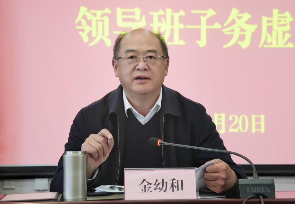 2月20日,学校召开2023年寒假领导班子务虚会,学校党委书记金幼和主持会议并讲话。
