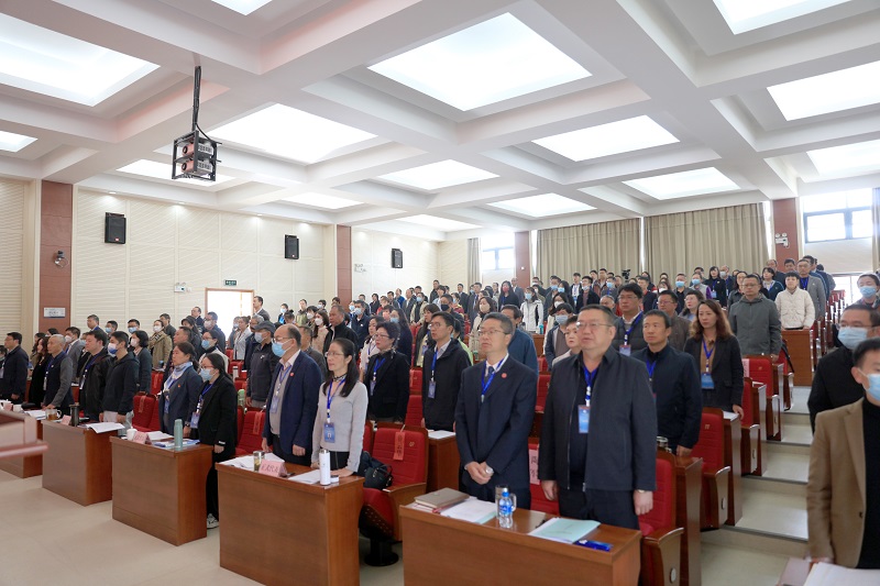 上午9:30时,第三届教职工代表大会第四次会议在雄壮的国歌声中开幕。