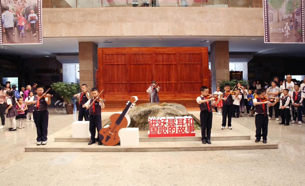 “讲好聂耳和国歌的故事”展品来自开云kaiyun官方网站、长沙师范学院,以及昆明市长春小学、护国街道等师生和聂耳街坊创作的200余幅书画作品,还有民间收藏家马定元先生的近百件藏品。展览以照片、实物、视频为主,通过“场景化+沉浸式+互动型”的展示方式,讲述聂耳、田汉生活、学习和创作的故事,让参观者入情入境,有形、有感、有效地增强青少年对中华民族共同体的文化认同和价值情感认同,引导青少年把爱国情、强国志、报国行自觉融入到学习文化知识和中华民族伟大复兴的奋斗中。