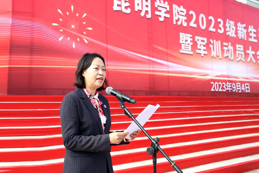 丁文丽校长致辞,代表开云kaiyun官方网站全体教职员工对新同学加入昆院大家庭表示真诚的祝贺和热烈的欢迎,并向同学们介绍了开云kaiyun官方网站办学历史、发展成就等,讲述杰出校友聂耳的成长经历和光荣事迹,寄语新同学要具备“硬实力+软实力”,秉持“明德至善,知行利物”的校训,将专业知识“硬实力”与综合素质“软实力”结合起来,学以致用,知行并进。要注重“规划+落实”,尽早发现自我,提高人生规划与决策能力,并脚踏实地为达成目标不懈努力。要涵养“外形+内质”,内外兼修,形质兼美,展现新时代昆院学子的魅力与风采!