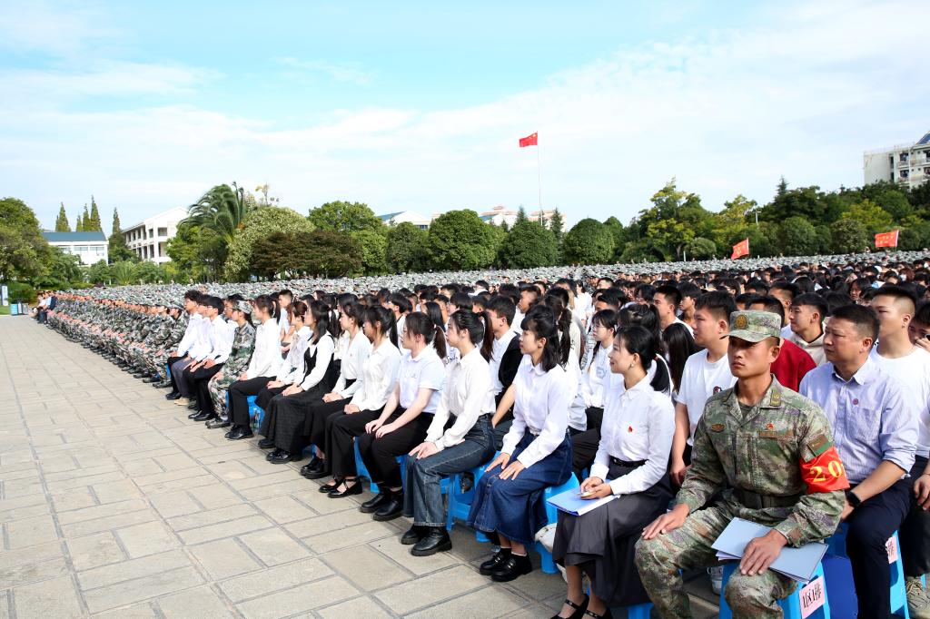 9月4日,开云kaiyun官方网站举行2023级新生开学典礼暨军训动员大会,5550余名新生齐聚聂耳广场参加庄严隆重的入学仪式。
