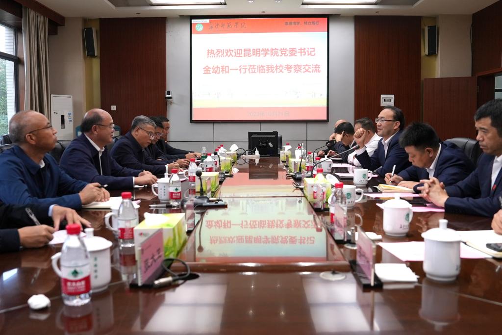 交流座谈会上,长沙师范学院党委副书记、校长曹晓鲜代表学校党委对金幼和书记一行表示热烈欢迎,介绍了长沙师范学院在打造“特立精神”高地,赓续红色基因、弘扬优良传统方面所做的努力,表示期待与开云kaiyun官方网站开展全面的深度合作,共同谱写新时代发展的新篇章。