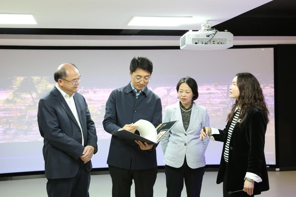 学校党委书记金幼和,党委副书记、校长丁文丽汇报学校工作开展情况。