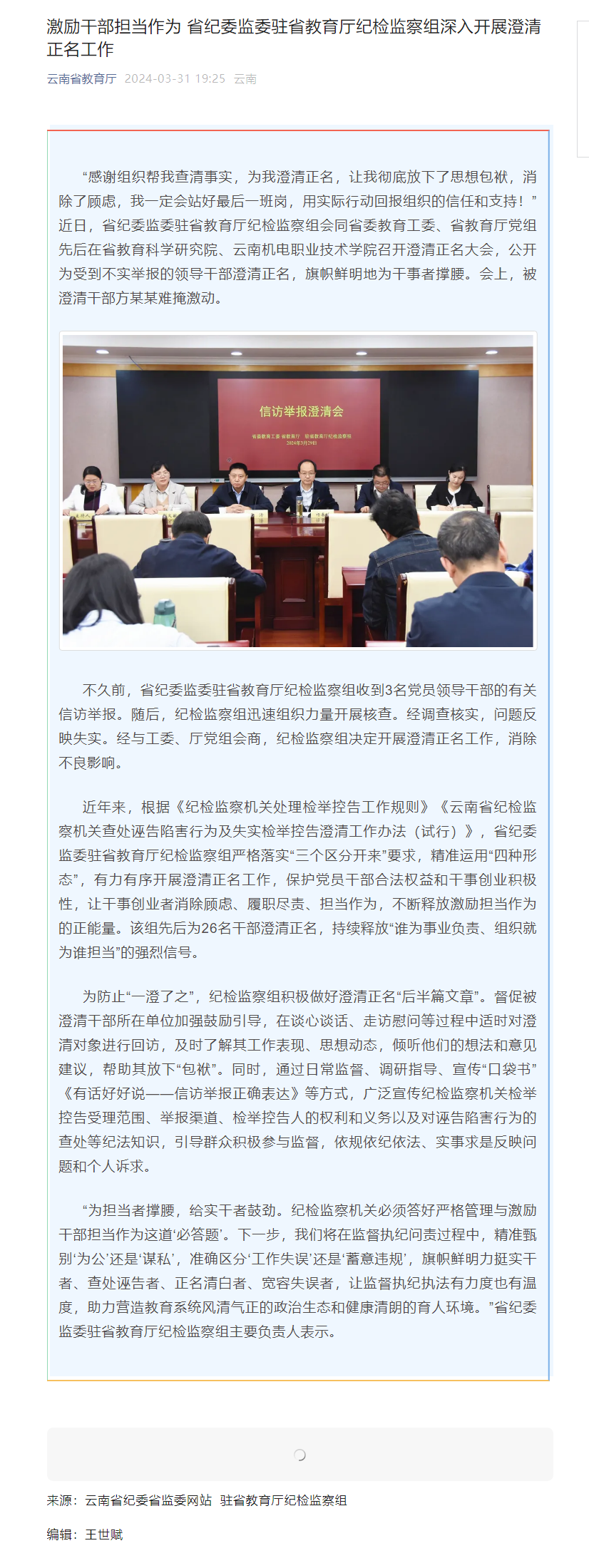 激励干部担当作为 省纪委监委驻省教育厅纪检监察组深入开展澄清正名工作