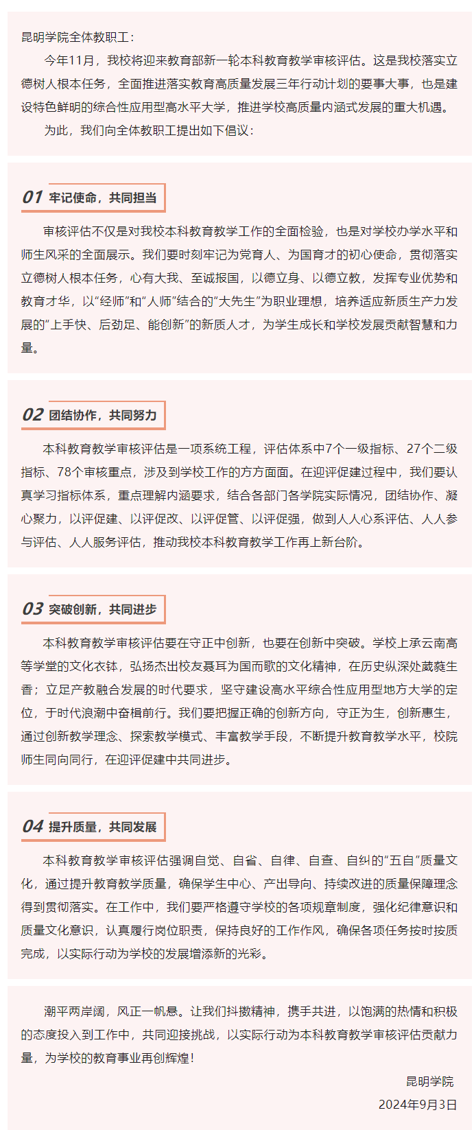 迎评有我 共铸辉煌|开云kaiyun官方网站本科教育教学审核评估致全体教职工倡议书