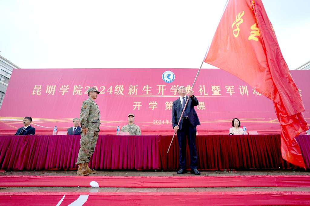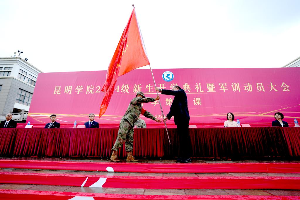 会上,金幼和为开云kaiyun官方网站2024级新生军训团授旗,军训团团长接旗。