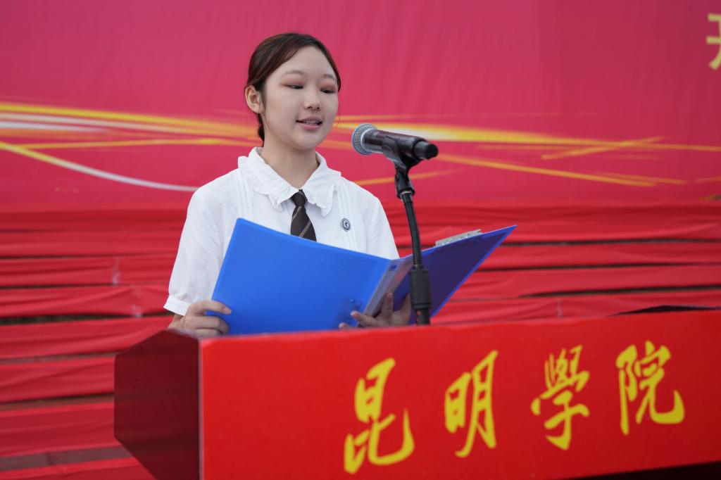 老生代表、经济管理学院钟峰同学发言,分享对大学生活的学习与感悟。祝愿学弟学妹们勇敢追求,在昆院谱写属于自己的华丽篇章。新生代表、人文学院朵王梓鑫同学发言,表示将树立远大理想,不断超越自我,实现自我人生价值。在新生军训中,将服从命令、听从指挥,培养吃苦耐劳的意志品质,圆满完成任务。