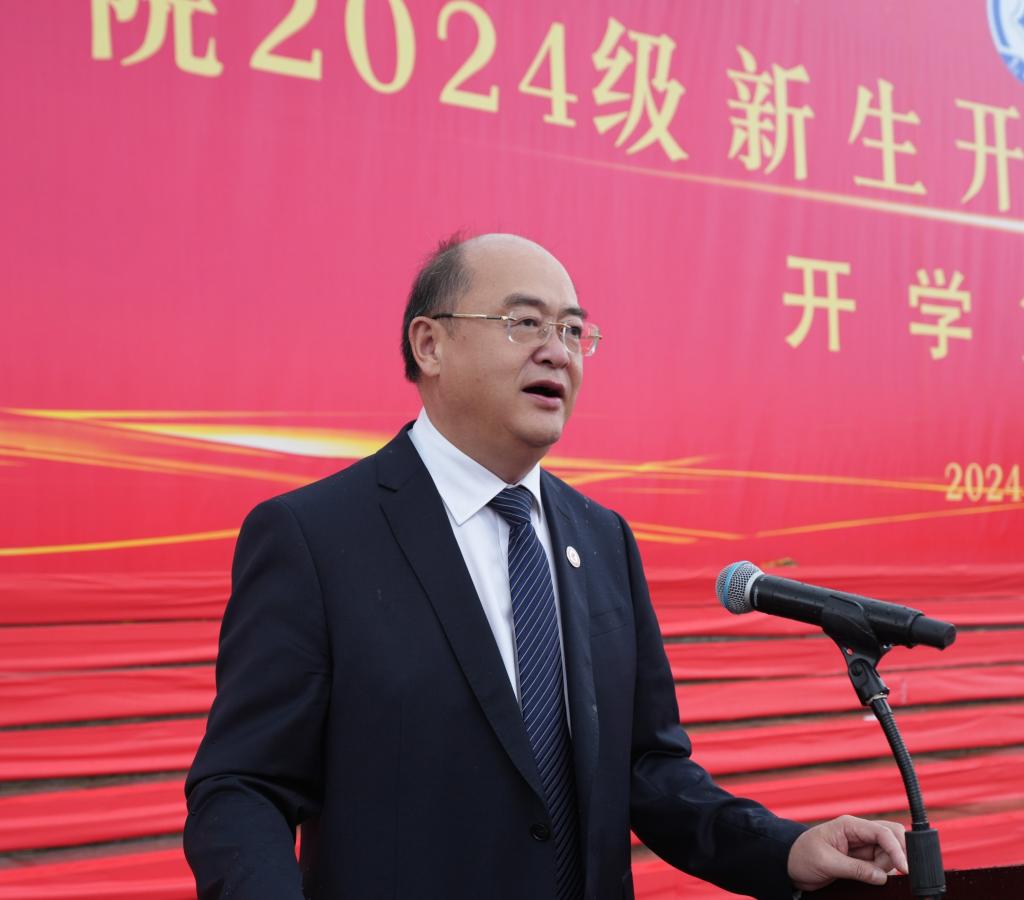 金幼和代表学校全体师生员工向新生加入开云kaiyun官方网站大家庭表示热烈欢迎,并以《厚植爱国情怀 笃行使命担当 为强国建设、民族复兴贡献青春力量》为主题,讲授了一场深刻而精彩的思政课,教育引导同学们深刻认识党的二十届三中全会的重大意义和关于全面深化改革的一系列新思想、新观点、新论断,学习好、领会好党的二十届三中全会精神和习近平总书记重要讲话精神。在中华人民共和国成立75周年之际,将小我融入祖国大我,融入人民大业,把个人理想融入国家和民族发展进程,与时代同呼吸、与人民共命运,立志肩负民族复兴的时代重任,做意气风发之青年。