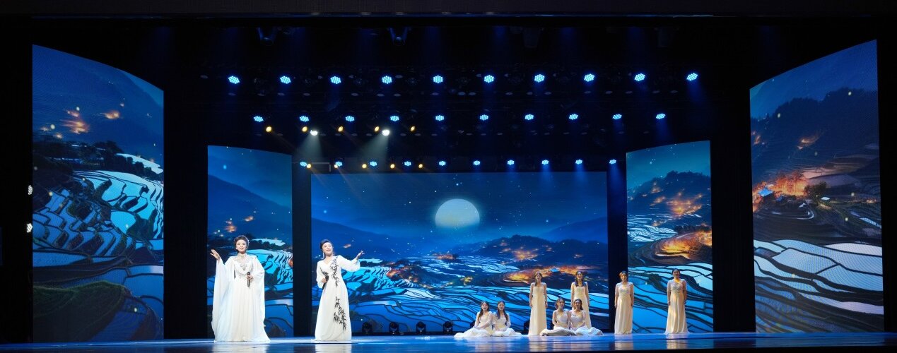 云南花灯女子群舞《茶春山有约》、双排键演奏《云南风景》共同演绎《滇韵》之美。