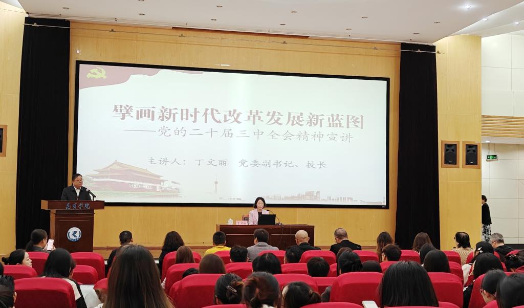 本学期开学伊始,学校全面开展党的二十届三中全会精神宣讲。学校校领导带头到联系单位和分管部门开展宣讲,覆盖了22个二级党组织和50多个单位部门,联系学院和分管部门的老师、学生聆听了报告,达到了宣讲全覆盖。