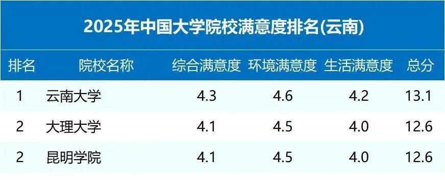 教育部阳光高考信息平台(gaokao.chsi.com.cn)发布“2025年中国大学院校满意度(云南省)”排名。开云kaiyun官方网站以总分12.6分的优异成绩,高居全省高校第二位。阳光高考网是由教育部高校学生司指定的高考招生信息发布网站,隶属国家智慧教育公共服务平台,这一排名基于全国高校历届毕业生的实名投票得出(涵盖生活条件、环境以及综合情况),是体现高校办学质量和学生体验的重要指标。