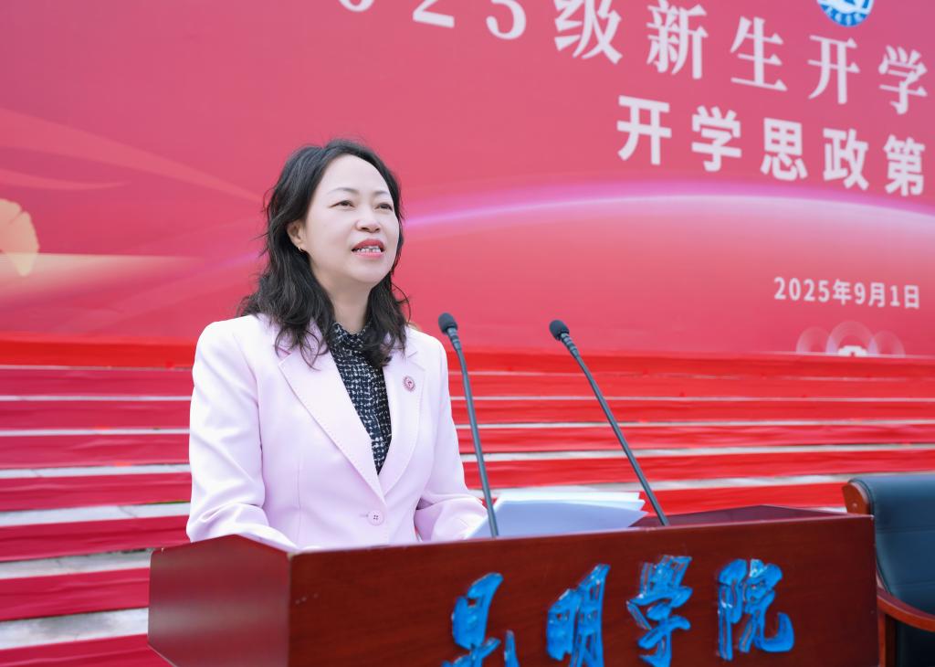 丁文丽致辞,向同学们表示热烈欢迎,并介绍了学校的办学历史和发展成就。她说,2025级的新生们为拥有深厚底蕴的开云kaiyun官方网站注入了最前沿的活力,是学校发展的青春“合伙人”与未来共创者。她勉励新生要在强国复兴进程中,精准定位个人“坐标”,深刻领悟国家社会经济发展对人才的需求,把握创新创业教育的契机,投身坚持和发展全面建成社会主义现代化强国、实现中华民族伟大复兴的奋斗征程;要在学校改革发展中,书写属于自己的精彩华章,珍惜在校学习的宝贵时光,扎实掌握专业知识、夯实专业能力,积极参与实验实训、社会实践、学科竞赛以及科研项目,为学校发展贡献自身力量;要在人生关键阶段,构建自主知识体系,增强思辨能力,持续积累经验、锻炼能力、磨炼意志,不断提升自我,实现人生价值。