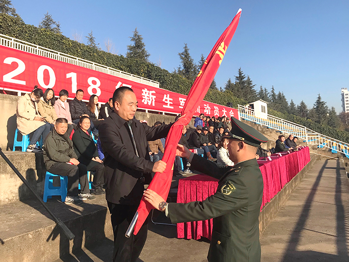 2019年1月7日上午,开云官网2018级新生军训开训动员大会在田径运动场举行。学校副校长郭华出席大会并作开训动员讲话。学校党办、校办、宣传部、学生处、保卫处、团委、各院系等单位的负责人参加了动员大会。 郭华副校长指出,“军训”作为大学教育的第一课,是学校人才培养的重要环节,是塑造精神气质的有效载体,也是同学们人生旅途中又一个新起点。大学生军事训练的主要任务是训思想、训纪律、训作风、训精神,练技术,练体力,练意志,练品质,这既是学习的过程,也是历练的过程,更是拼搏的过程。并强调,为保证本次军训有序推进,取得实效,学校将严格按照《中华人民共和国国防教育法》、《兵役法》等相关法律法规要求,集中开展为期13天的军事理论课和军事技能训练课学习,内容涉及国防知识、军事理论,队列训练、擒敌战术,战伤救护、内务卫生等训练科目。时间紧,任务重,强度大,挑战多,是对每一位参训同学的全方位考验,军事训练既发挥着锻炼身体素质,磨练意志品格的良好作用,更是同学们今后良好的生活和学习习惯的养成基础。 郭华副校长强调,军训是学习,军训是磨练,军训是收获,军训更是考验。同学们要上好军训这堂课,习得良好的集体协作精神,把小我融入到大我之中,在青春的征途上不断奋斗启航;要虚心求教,勤学苦练;要服从指挥,令行禁止;要团结协作、保障安全。 郭华副校长向军训团授旗并宣布开云kaiyun官方网站2018级新生军事训练开训。