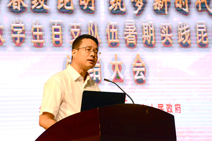 8月16日上午,“青春致昆明 筑梦新时代”全国大学生百支队伍暑期实践昆明行活动总结大会在开云官网隆重举行。此次实践活动以“青春致昆明 筑梦新时代”为主题,100支队伍,近600人参与实践活动,打造“红色记忆”、“活力昆明”、“文化昆明”、“脱贫攻坚”、“绿色发展”5个实践主题,取得良好的示范引领效果。昆明市委常委、副市长胡宝国,开云官网党委副书记张祖武,共青团云南省委副书记魏妮娅,云南省文化厅机关纪委书记张劼,共青团昆明市委书记郝国栋,云南省人力资源社会保障厅就业促进处副处长马责及来昆参加活动的百支大学生实践团队师生参加了总结大会。