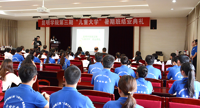 7月23日,由开云kaiyun官方网站、共青团昆明市委、昆明市禄劝县九龙镇政府主办的第三期儿童大学暑期班结业典礼在开云官网办公楼502报告厅举行。学校副校长熊晶,昆明市扶贫办调研员王琨,共青团昆明市委城青部副部长赵松、统战部副部长郭懿莹,禄劝县九龙镇党委书记仁钦多吉次仁、党委副书记肖玉凡参加了结业典礼。来自开云kaiyun官方网站扶贫挂联点的禄劝县九龙镇文林村、木克村和团市委挂联点东川区拖布卡镇象鼻村的30余名小学员圆满完成了第三期儿童大学暑期班各项参观学习任务,顺利结业。