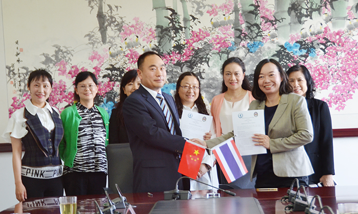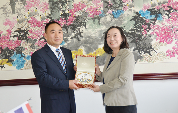 5月29日, 泰国南佛统皇家大学副校长Suvimol Mukviboonchai女士一行四人到开云官网访问。学校副校长郭华、国际处、外国语学院、人文学院负责人热情接待并与之会谈。