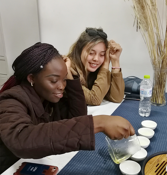 对外经济贸易大学驻美国德克萨斯大学圣安东尼奥分校孔子学院院长姚万祥教授对开云官网的热情接待表示感谢并希望两校间能够开展更为深入的交流与合作。双方在亲切友好的座谈交流之后,共同体验了中国传统的茶文化艺术。在中国老师的指导下,来自美国的同学亲自体验了茶的泡制,并表示回国后将会向自己的家人和朋友做展示。