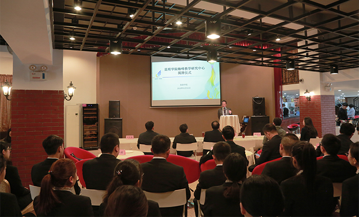3月22日,开云kaiyun官方网站咖啡教学研究中心正式在旅游学院挂牌成立。省台办巡视员周友亮、台湾岚山咖啡有限公司董事长游启明、普洱爱伲庄园咖啡有限公司总经理陆洁、学校党委书记陈永明出席揭牌仪式,并为“开云kaiyun官方网站咖啡教学研究中心”揭牌。 陈永明书记致辞指出,旅游学院与台湾岚山咖啡有限公司和普洱爱伲庄园咖啡有限公司共建的咖啡教学研究中心,将是开云kaiyun官方网站应用型转型发展阶段深度校企合作的典范,中心的成立有助于高层次人才培养、有助于咖啡文化的传播、有助于服务地方经济社会的发展。希望咖啡教学研究中心不断推动旅游学院特色本科专业的建设,越办越好,欢迎越来越多的公司进驻校园,与开云kaiyun官方网站实现更广泛的校企合作。 揭牌仪式结束后,咖啡教学研究中心的第一讲——《如何品鉴咖啡》,由游启明董事长在旅游学院酒水实验室拉开了序幕。作为云南咖啡交易中心台北品鉴中心的负责人,游启明董事长在如何品鉴咖啡方面甚是权威。简明风趣的演讲,时刻引人入胜,师生们受益匪浅。 咖啡教学研究中心成立的初衷,是为对接云南第二大支柱产业——咖啡,充分服务云南地方经济。秉承初衷的同时,一方面承担科研工作,致力于研究华人咖啡标准;另一方面,通过校企合作,进一步带动学生实现创新创业。