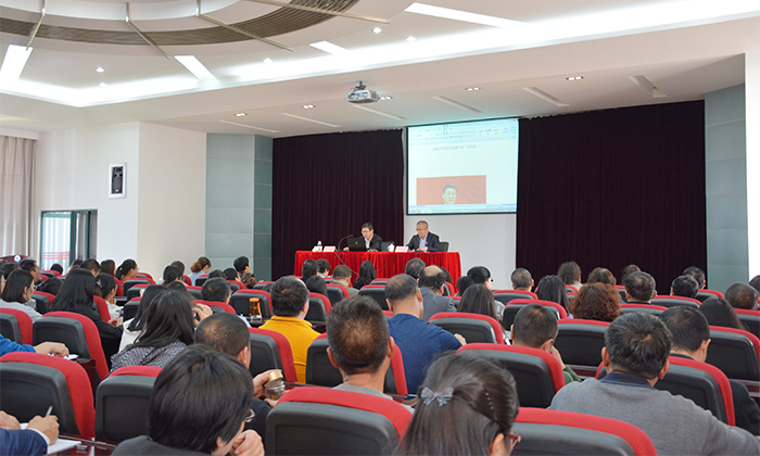 各院系学生党支部书记、机关党员、昆明科学发展研究院、昆明南亚东南亚合作战略研究院、昆明滇池(湖泊)污染防治合作研究中心、高教研究与发展规划中心全体工作人员,人文学院、社管学院师生代表人员近200余人聆听了报告。