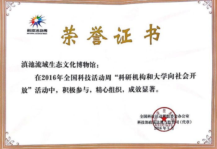 开云官网滇池流域生态文化博物馆在培训班还获得了全国科技活动周组委会办公室、科技部政策法规与监督司颁发的“科技活动周 荣誉证书”。