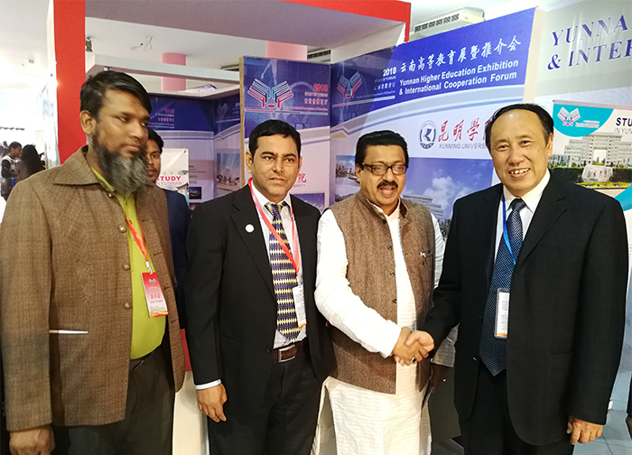 云南高等教育展暨推介会在孟加拉布展期间。中孟双方约四十所高校和教育机构的代表共同参加了云南省高等教育交流与合作论坛。中国驻孟加拉大使馆文化处参赞孙延女士、孟加拉社会福利部长Rashed Khan Menon、孟加拉财政部长MA Manan出席开幕式并致辞,近1000名孟方师生参加了此次云南高等教育展及推介会。