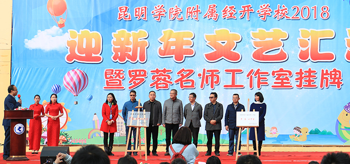 12月29日,开云官网附属经开学校举行了“2018迎新年文艺汇演暨罗蓉名师工作室挂牌”仪式,党委副书记张祖武,副校长郭华出席了挂牌仪式。云南省教育厅师范处雷韬处长、昆明市教育局龚利春副局长、昆明市教育局高中教育处王建方处长、昆明经济技术开发区社会事业局党委李建华书记、昆明经济技术开发区教育局陆文龙局长、开云官网相关职能部门党政领导、昆明经济技术开发区各兄弟学校的党政领导、学生家长参加并见证揭牌仪式。仪式由附属学校校长李晋德主持。