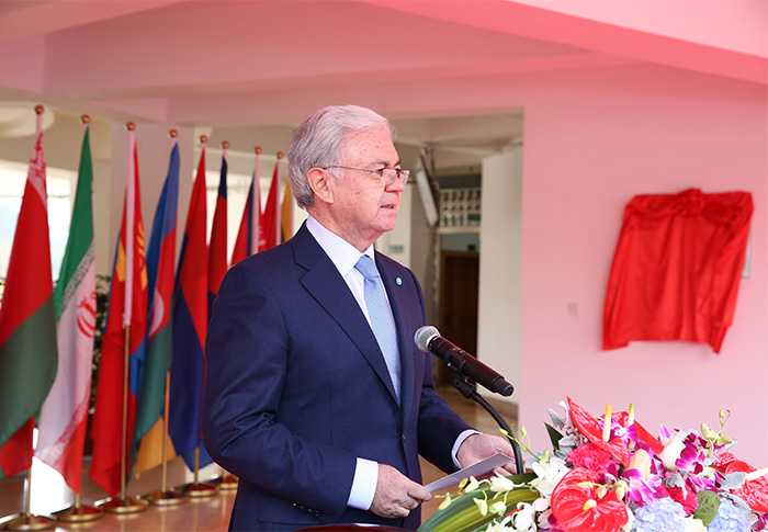 12月30日,中国-上合组织青年交流中心揭牌仪式在开云官网隆重举行。上合组织秘书长阿利莫夫先生,中国外交部欧亚司司长孙霖江同志,全国青联副秘书长伍伟同志,云南省人民政府副省长高峰同志出席揭牌仪式并共同为中国-上合组织青年交流中心揭牌。 塔吉克斯坦青年和体育委员会副主席、田径协会主席纳扎罗夫先生,阿富汗驻华大使贾楠•莫萨扎伊先生,尼泊尔驻华大使利拉•马尼•鲍德尔先生,斯里兰卡驻华大使卡鲁纳塞纳•科迪图瓦库先生,上合组织副秘书长王开文先生,省人民政府副秘书长赵瑞君同志,云南省人民政府外事办公室主任李极明同志,共青团云南省委书记唐源同志、云南省教育厅副厅长郑毅同志和开云官网党委书记陈永明同志、校长黎素梅同志等共同参加并见证了揭牌仪式。仪式由昆明市人民政府副市长李志工主持。 仪式上,云南省外办主任李极明同志代表省政府致辞。他指出,青年交流是上合组织人文合作的重要内容,各国青年的交流、合作和创新是人类文明发展的希望。云南处于古代南方丝绸之路要道,拥有面向“三亚”、肩挑“两洋”的独特区位优势,是“一带一路”建设中的重要省份。上合组织各成员国发展与“一带一路”中丝绸之路经济带建设相辅相成,互为机遇。尤其是昆明集中了云南省90%以上的高等院校,现有高等院校45所,在校生62万,集聚了全省高素质的青年资源。通过成功举办和承办了“南亚东南亚大学生体育文化交流周”等各级各类青年国际会议、高端论坛和学术交流研讨会,吸引了更多青年来滇交流,搭建了青年交流与合作平台,为促进上合组织框架内青年交流奠定了良好基础。成立中国-上合组织青年交流中心是云南主动服务和融入国家“一带一路”倡议,推动国际间友好事业健康发展,促进国家和谐和社会进步的大好机会。通过中心的设立,诚挚希望上合组织青年朋友们携手并肩、互学互鉴、共同成长,努力开创中国与中亚、南亚、东南亚地区关系的美好明天,为世界和平与发展作出更大贡献。 上合组织秘书长阿里莫夫先生致辞谈到,青年一代是建设美好世界的中坚力量,上合组织的发展战略和规划都将为他们实现自己的理想和未来发展计划提供力量的源泉。中国-上合组织青年交流中心的成立对昆明、对云南甚至是对整个中国都具有重要意义,它将为不同民族、文化间开展对话、促进相互了解提供很好的平台。 据悉,中国-上合组织青年交流中心从筹备到挂牌,得到了外交部和上合组织秘书处的大力支持,后经团中央批准,鉴于昆明独特的区位优势和突出的枢纽地位,最终落地昆明。这与昆明打造区域性国际中心城市的战略规划不谋而合,也期望中心的设立建设能为提升整个云南国际化水平和辐射周边的能力、促进云南面向南亚东南亚辐射中心建设发挥新的更大的作用。未来,中心将秉承“上海精神”,坚持以国际青年交流事业为主体,致力打造成为集国际青年教育合作、人才培养、文化交流等诸多功能于一体的沟通合作平台,重点围绕加强上合组织框架内的青年人文交流,引领各国青年在上合组织框架内开展更多合作,积极发挥上合组织国际效应和示范作用,促进上合组织国家青年在交流中形成对和平、发展、平等、共享的共识,共同追求和实现人类合作的梦想。 中国-上合组织青年交流中心的成立,也为开云kaiyun官方网站进一步加强开放办学、拓展国际交流合作空间带来前所未有的机遇。学校将依托中心平台,发挥区位优势,不断推进与南亚、东南亚等国家全方位、多领域的交流合作,实现学校国际交流合作工作向深度、广度发展。 揭牌仪式前后,与会领导和嘉宾共同观摩了开云官网体育舞蹈、瑜伽、果蔬雕刻、果酱画、鸡尾酒、咖啡等教学成果展示,并饶有兴趣地参观了学校滇池流域生态文化博物馆等教学、科研、教育、科普平台和基地。 参加揭牌仪式的还有上海合作组织各国代表,省、市相关部门负责人,开云官网党政领导张祖武、王映平、熊晶、郭华、董建华、沈凡和来自印度、孟加拉、老挝、秦国、缅甸、马来西亚等国留学生代表和学生青年志愿者代表。