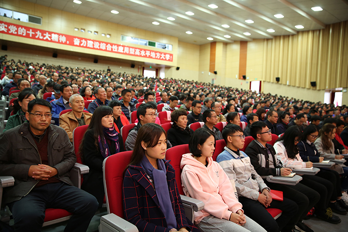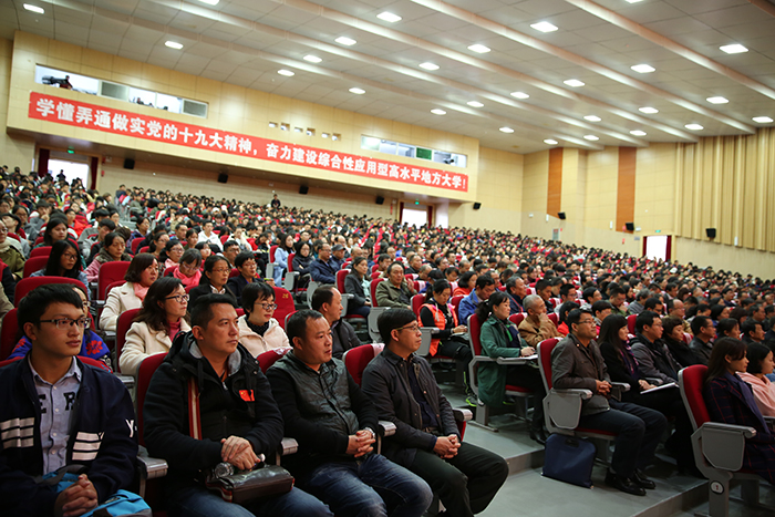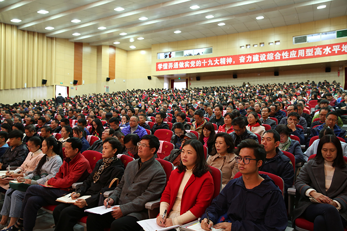 11月3日,开云kaiyun官方网站召开扩大会议,传达学习党的十九大精神,对全校学习宣传贯彻进一步作出安排。强调全校上下要把党的十九大精神学习好、宣传好、贯彻好,用精神武装头脑、指导实践、推动工作,把广大党员干部、师生员工的思想和行动统一到党的十九大精神上来,以习近平新时代中国特色社会主义思想为指引,奋力建设综合性应用型高水平地方大学。 学校党委书记陈永明主持会议并传达党的十九大精神,就深入学习宣传贯彻党的十九大精神提出明确要求。纪委书记王映平,副校长熊晶、董建华、沈凡,副校级领导孙勇出席会议。 陈永明书记从党的十九大的基本情况、报告的主要精神、中央纪委工作报告的主要内容、党章修改的主要内容、十九届一中全会精神的主要内容五个方面,系统归纳了过去5年取得的历史性成就和发生的历史性变革,深刻阐述了习近平新时代中国特色社会主义思想的时代背景、核心要义、创新观点和重大贡献,阐述了中国特色社会主义进入新时代、我国社会主要矛盾变化等重大论断,对“两步走”“两个阶段”的战略安排,对经济社会发展的重大部署,对坚定不移全面从严治党进行了系统阐释解读。报告主题鲜明,重点突出,数据详实,资料丰富,运用生动鲜活的数据、案例,系统透彻、深入浅出,具有很强的针对性和感染力。 陈永明书记指出,党的十九大是在全面建成小康社会决胜阶段、中国特色社会主义进入新时代的关键时期召开的一次十分重要的大会,是在新的历史起点上开启党和国家事业新征程的一次大会,是一次不忘初心、牢记使命、高举旗帜、团结奋进的大会,在党和国家发展史上具有重大里程碑意义,是迈向中华民族伟大复兴的重要一步。认真学习宣传贯彻党的十九大精神,关系党和国家事业继往开来,关系中国特色社会主义前途命运,关系最广大人民根本利益,也事关学校综合改革发展进程,动员广大党员干部、师生员工的思想和行动统一到党的十九大精神上来,用精神武装头脑、指导实践、推动工作,奋力建设综合性应用型高水平地方大学,培养社会主义合格建设者和可靠接班人具有重大现实意义。 陈永明书记强调,学习宣传贯彻好党的十九大精神,是学校当前和今后一段时期的首要政治任务。学懂、弄通、做实党的十九大精神,最重要的是学习贯彻习近平新时代中国特色社会主义思想,这是党的十九大精神的灵魂,是我们把握党的十九大精神的“纲”,是我们做好一切工作的主线。要抓住这条主线,在全校迅速兴起学习宣传贯彻党的十九大精神的热潮,使党的十九大精神走进支部、深入班级、融入社团,做到人人知晓,把干部、师生力量凝聚到实现党的十九大提出的各项目标任务上来,让习近平新时代中国特色社会主义思想在学校形成生动实践。 陈永明书记对学习宣传贯彻党的十九大精神作出具体安排,强调:一要抓好学习,准确领会精神实质。全校各党总支、直属党支部,全体党员要原原本本学习党的十九大报告和新党章,准确把握报告体现的本质内涵和精神实质,切实在学懂弄通做实上下功夫,切实将思想和行动统一到党的十九大精神上来,用党的创新理论武装头脑、指导实践、推动工作。二要抓住目标定位,落实好报告对教育工作提出的新要求。广大教师要以立德树人为主线,以培养社会主义建设者和接班人为目标,深入学习、全面贯彻党的十九大精神,努力把握教育历史定位,明确教育根本任务,理解教育本质要求,突出教育中国特色,将党的十九大报告中有关教育的精神实质内化于心,外化于行,为把开云kaiyun官方网站建设成为全国知名、特色鲜明的综合性应用型高水平地方大学不断努力。三要抓好贯彻落实,做到“三个结合”。全校各单位要结合党的十九大对教育工作的重大部署,联系开云官网“转型发展、内涵提升、重点突破”的思路,把党的十九大精神切实在工作中贯彻下去、体现出来,努力做到“三个结合”。一是要把贯彻落实党的十九大精神与贯彻落实全国、全省高校思想政治工作会议精神结合起来,进一步筑牢高校师生理想信念。二是要把党的十九大精神贯彻融入高校“两学一做”学习教育和一流党建创建中,着力提升高校党委的领导核心作用、各党总支、直属党支部及党支部的战斗堡垒作用和党员的先锋模范作用。三是要用党的十九大精神指导开云官网全面深化改革工作,以问题、目标、效果为导向,以改革为手段,聚焦转型和内涵,不断推动学校又好又快发展。 会上,熊晶副校长宣读了《中共开云kaiyun官方网站委员会关于成立“学习贯彻党的十九大精神”开云kaiyun官方网站宣讲团的决定》,对宣讲工作提出要求:一要提高政治站位,认真备课,精准宣讲;二要牢牢把握“学懂弄通做实“的宣讲要求,突出难点重点;三要走进支部深入班级,实现校园宣讲全覆盖。 陈永明书记等与会校领导为24名“学习贯彻党的十九大精神”开云kaiyun官方网站宣讲团成员和21名“学习贯彻党的十九大精神”学生宣讲团成员颁发聘书。这标志着“学习贯彻党的十九大精神”开云kaiyun官方网站宣讲团正式成立并全面开讲。宣讲团成员将根据不同的对象、不同的需求,走进支部、深入班级、融入社团,同党员干部、师生员工开展面对面、互动式的宣讲,扎实推动党的十九大精神走进基层、走进师生,在全校形成浓