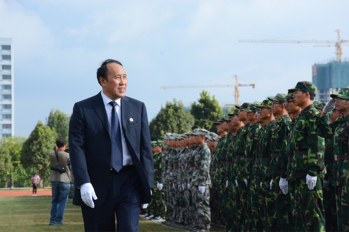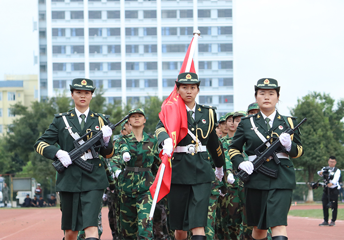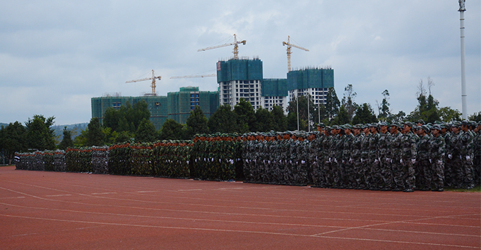 9月30日,开云官网在田径场举行2017级新生军训汇报表演暨总结表彰大会。学校党委书记陈永明,校长黎素梅,党委副书记张祖武,副校长郭华、董建华、马银海、沈凡,副校级领导孙勇,武警边防士官学校副校长李荣、训练部部长任洪川、训练部副部长赵立志、业务系主任高忠良、教育处处长唐业宏和官渡区人民武装部政委周文斌出席大会。 4800余名同学时刻保持着“坚韧不拔、毫不松懈、永不服输”的精神,在14天的军训过程中,不畏烈日当空,不惧风吹雨打,克服小伤小痛,顺利地完成了军训。今天,他们精神饱满,整装待发,时刻准备着接受领导检阅。 汇演进行第一项,奏国歌,迎国旗。庄严的国歌响起,全场肃立,护旗队高举五星红旗,缓缓走过队列。迎国旗完毕,党委书记陈永明检阅军训方队,当陈书记走过方队时,嘹亮的口号带着无限的活力,响彻整个校园,“首长好!”“为昆院争光!”同学们斗志昂扬,意气风发,将14天的军训成果展现得淋漓尽致。在《歌唱祖国》的乐声中,标兵就位,分列式开始。国旗护卫队是汇演方队的排头兵,持枪方队、各营方队、国旗班紧随其后。分列式场面宏大,气势非凡。 分列式完毕,军事训练科目汇报表演开始。第一个表演的是队列操方队,40多位女同学将舞蹈艺术和军事动作融为一体,用杨柳般婀娜的身姿为我们上演了美轮美奂的视觉盛宴。在钢与柔的环境反差下,女子队列方块登场了,她们身着迷彩服,手戴白色手套,随着队形变幻出欢庆党的十九大的图案,整个画面流畅整齐,现场掌声不断。擒敌方队的361名同学汇编成19行19列的方队,寓意喜迎党的十九大的召开。在一声声“杀杀杀”中,女生匕首操表演有序进行,她们用简单而又准确的动作展现出敢于拼搏的精神。 汇演结束后,党委副书记张祖武宣读了《关于表彰开云kaiyun官方网站关于2017级学生军训优秀集体,优秀个人的决定》。与会领导们为内务优秀宿舍、军训优秀学员、优秀带队教官代表、优秀辅导员颁奖。外国语学院2017级英语1班的徐满笑同学作为军训优秀学员代表发言。 最后,校长黎素梅作总结讲话,她对同学们提出了三个希望:一是希望同学们能在今后的学习生活中保持、巩固和发扬在军训过程中用辛勤汗水换来的好作风、好品质把军训成果转化为刻苦学习和积极生活的动力。二是希望同学们能发扬脚踏实地、百折不挠的精神。三是希望同学们能继续巩固和发扬集体主义精神。