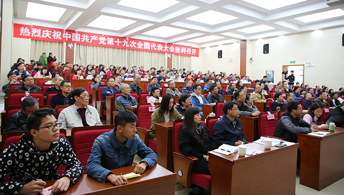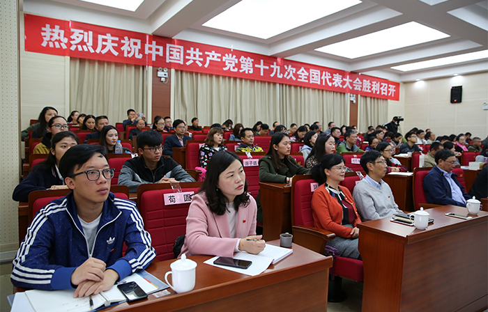 盛世中华奏凯歌,盛会鼓舞人心、报告催人奋进。10月18日上午,举世瞩目的中国共产党第十九次全国代表大会在北京人民大会堂隆重召开,习近平同志代表第十八届中央委员会向大会作了题为《决胜全面建成小康社会夺取新时代中国特色社会主义伟大胜利》的报告。习近平指出,中国共产党第十九次全国代表大会,是在全面建成小康社会决胜阶段、中国特色社会主义进入新时代的关键时期召开的一次十分重要的大会。大会的主题是:不忘初心、牢记使命,高举中国特色社会主义伟大旗帜,决胜全面建成小康社会,夺取新时代中国特色社会主义伟大胜利,为实现中华民族伟大复兴的中国梦不懈奋斗。 学校党委组织全体中层干部和师生员工代表集中收看党的十九大开幕盛况。党委书记陈永明,校长黎素梅,党委副书记张祖武,纪委书记王映平,副校长董建华、马银海、沈凡,副校级领导孙勇等党政领导班子成员与干部、师生员工们一同聆听习近平同志代表十八届中央委员会向大会作的报告。各党总支、直属党支部也结合实际,利用电视、广播、网络等多种途径,采取集中与分散的形式,组织师生收听收看。习近平总书记作的报告引起师生强烈反响。 大家一致认为,习近平同志向大会所作的报告,高举中国特色社会主义伟大旗帜,全面总结了过去五年的伟大成就和历史性变革,系统阐述了构成新时代坚持和发展中国特色社会主义的基本方略,进一步明确了未来一个时期党和国家事业发展的大政方针和行动纲领,科学谋划了到本世纪中叶的战略性发展目标和宏伟蓝图,为实现中华民族伟大复兴指引了前进的方向。报告旗帜、主题鲜明,内涵丰富,高屋建瓴,思想深刻,鼓舞人心,催人奋进。 陈永明书记指出,党的十九大胜利召开是一次具有重大历史意义的会议。大会标志着中华民族伟大复兴的中国梦将开启一个新的具有重大历史意义的新篇章。大会也向世界展示了以习近平同志为核心的党中央高举中国特色社会主义伟大旗帜,全党全国各族人民向着中华民族伟大目标奋勇前进,勇往直前。大会让我们深深地感受到我们国家发生的具有重大意义的历史性变化,也让我们深深地感受到国家取得的伟大成就。这些成就的取得令我们深受鼓舞,也倍感自豪。 陈永明书记强调,开云kaiyun官方网站作为一所高等院校肩负着为中国特色社会主义培养合格建设者和接班人的重任。学习好贯彻好党的十九大精神,用党的十九大提出的新理论新思想新要求武装广大干部、师生,这将是当前最重要的政治任务。我们作为高校要始终回答好怎么样培养人,培养什么样的人这一重大历史问题。要坚持中国特色社会主义办学方向,坚持立德树人这一根本任务。我们将在党的十九大精神的指引下深化学校教育体制机制改革,推动学校教育、科研和人才培养工作。 “过去五年,党的事业、国家的事业取得的进步和发展,每一个共产党员、每一个中国人都真切感受到巨大的变化,我为国家的日益富强倍感自豪,这一切和党的坚强领导密不可分。”人文学院党总支书记陈嘉教授表示,作为一名高校的党员教师,要牢记习近平总书记的重要讲话精神,牢记使命,把教书育人和为人民服务的宗旨贯穿到具体的工作之中,认真学习、努力工作,不辜负师生的期待和信任,在新的时代争做一名优秀的共产党员。 马克思主义学院形势与政策教研室主任苟园副教授说,看到在过去五年以习近平同志为核心的党中央带领全国人民迎难而上、革故鼎新、砥砺奋进取得的辉煌成就,由衷感到自豪和骄傲。作为一名高校思想政治理论课教师,我将认真学习党的十九大报告,牢记高校教师的使命与责任,围绕立德树人的中心工作,坚持不懈传播马克思主义理论,为学生的一生成长奠定科学的思想基础,为社会主义现代化建设培养合格建设者和可靠接班人;以开拓进取的精神为实现中华民族的伟大复兴贡献自己的力量。 “作为一名高校的普通党员教师,我认为理想信念是共产党人安身立命之本和政治灵魂,所以我们要把立德树人作为使命,把为共产主义教育事业奋斗终身作为自己的职责,为党的教育事业鞠躬尽瘁。”国际交流合作处留学生管理科科长陆向红老师表示,在党的十九大精神指导下,发挥昆明地处辐射南亚、东南亚的地缘优势和学校办学特色的吸引力,进一步做好南亚、东南亚留学生工作,搭建交流桥梁,传播博大精深的中国文化,培养留学生知华、爱华、亲华的情感,为“一带一路”沿线国家的经济文化发展添砖加瓦。 “过去五年我国取得的巨大成就,我作为一名中国人而自豪。”人文学院2015级历史学专业学生邓博文表示,我作为历史学师范类专业的学生,今后在自己的专业领域上不断努力学习钻研,将来在教师岗位上秉承立德树人、以身为范精神,把自己的知识传授给学生,让他们懂得老一辈革命家的艰辛奋斗历程,懂得新中国成立的来之不易以及我国的光辉历史,为实现中华民族伟大复兴的中国梦而不懈奋斗。我会继续严格按照党章的要求履行一名共产党员的职责,不忘初心、牢记使命,继续前进。 “地铁、高铁如期开通,让我切身感受到出行的方便和‘中国速度’。”自动控制与工程管理学院2016级交通运输专业学生赵茜茜自豪地说,昆明创建文明城市,基础设施得到进一步的完善,人民素质不断提高,城市凝聚力和竞争力进一